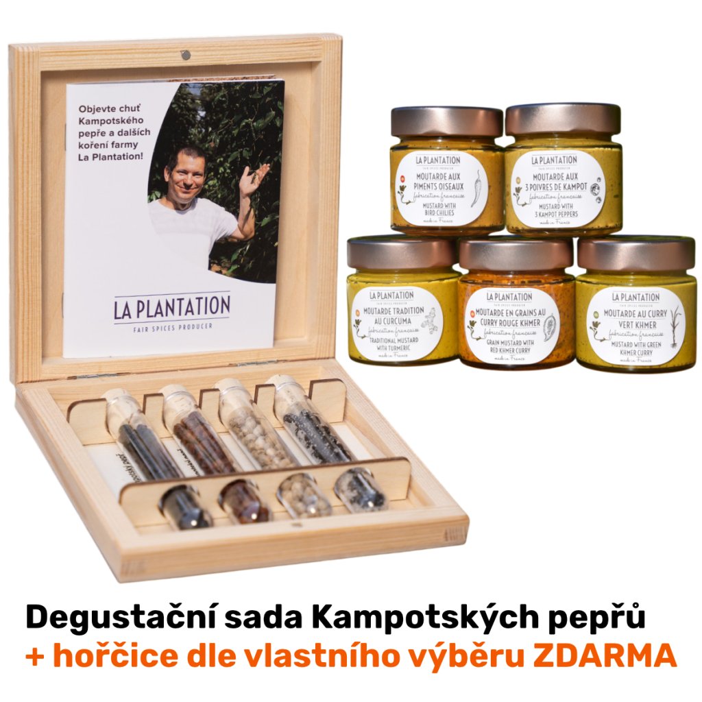 Špičkové produkty La Plantation jsou opakovaně oceňovány na mezinárodních soutěžích jako Great Taste, Monde Selection, Épicures d’Or či Gourmet Selection. Ocenění získávají nejen Kampotské pepře! Také naše jedinečná kurkuma s neobvykle vysokým obsahem kurkuminu a nebo pepřová omáčka, naposledy Green Pepper rub. Přinášíme zcela nové výrobky jako sušené ovoce (mango a ananas) s Kampotským pepřem či již zmíněné revoluční grilovací koření téměř bez soli s maximem chuti špičkových koření z Kampotu, oceněné Great Taste 2023. Bránou do světa khmerské kuchyně jsou pak i khmerská kari, vše v organické kvalitě!